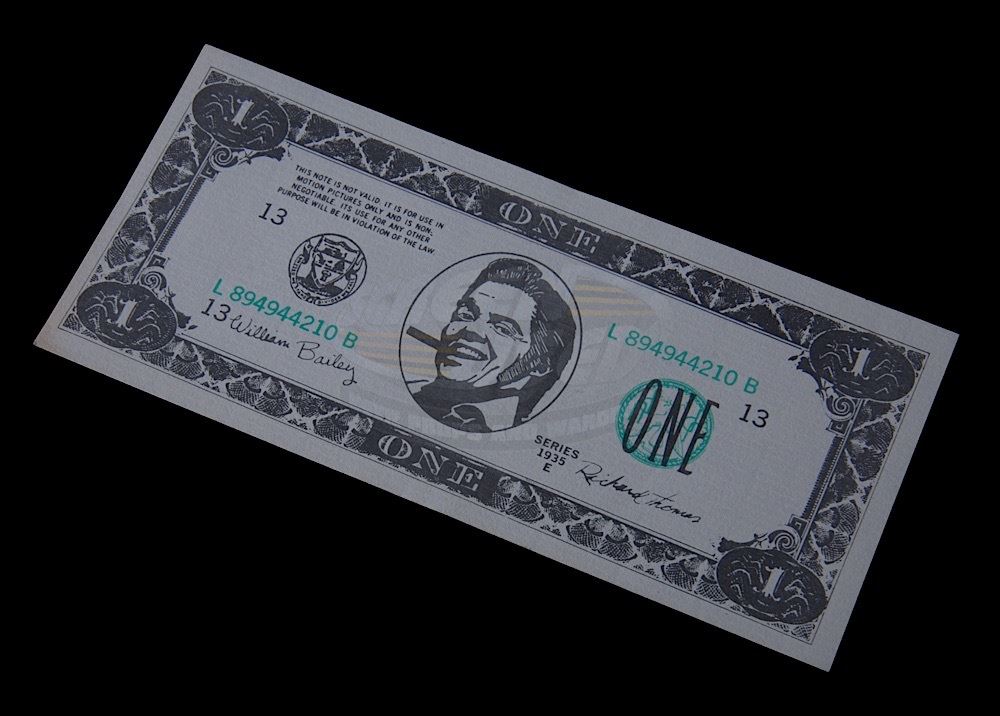 This one dollar bill was custom-printed by the production for use by extras in alternate 1985 and features Biff's image in the center of the bill. The Biff money is never seen in the final cut of the film.