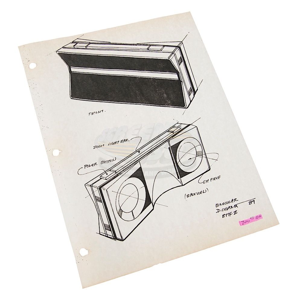 (Universal Studios, 1989) This set of four concept art copies were owned and used by John Zemansky, the property master of all three films. The drawing copies consist of the EZ-Sleep, Doc's binoculars, dog walker and litter bug. Each piece measures 8.5" x 11".