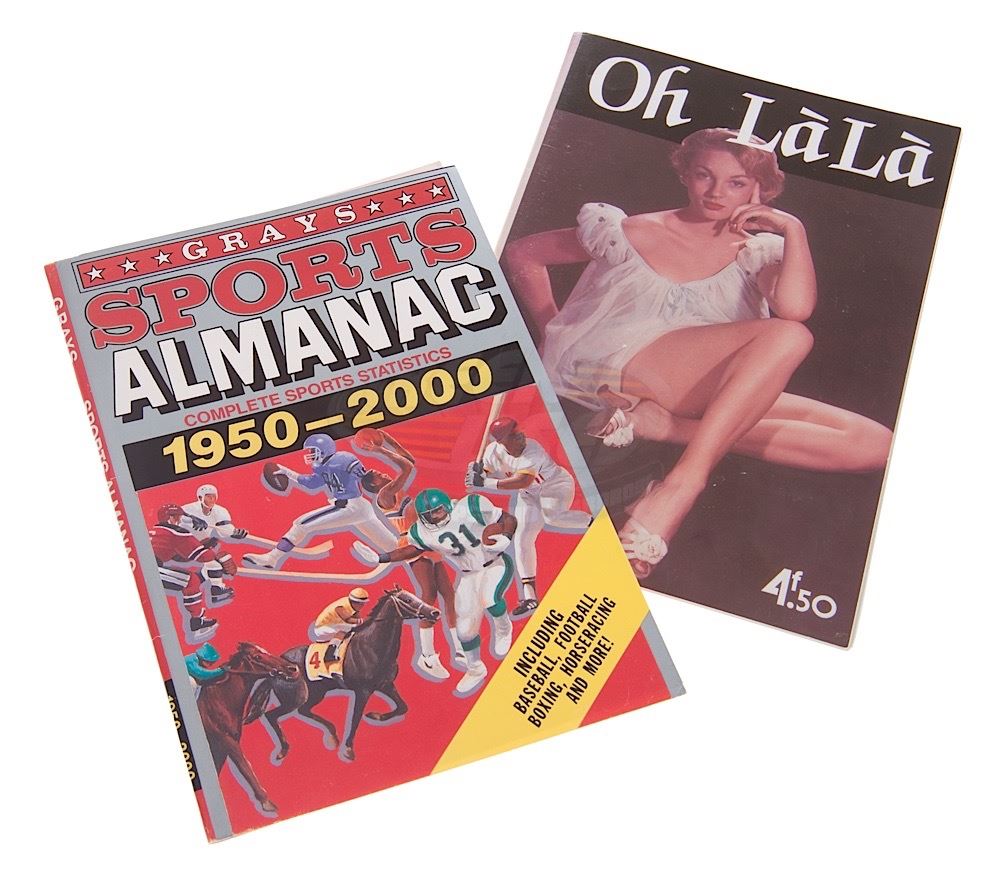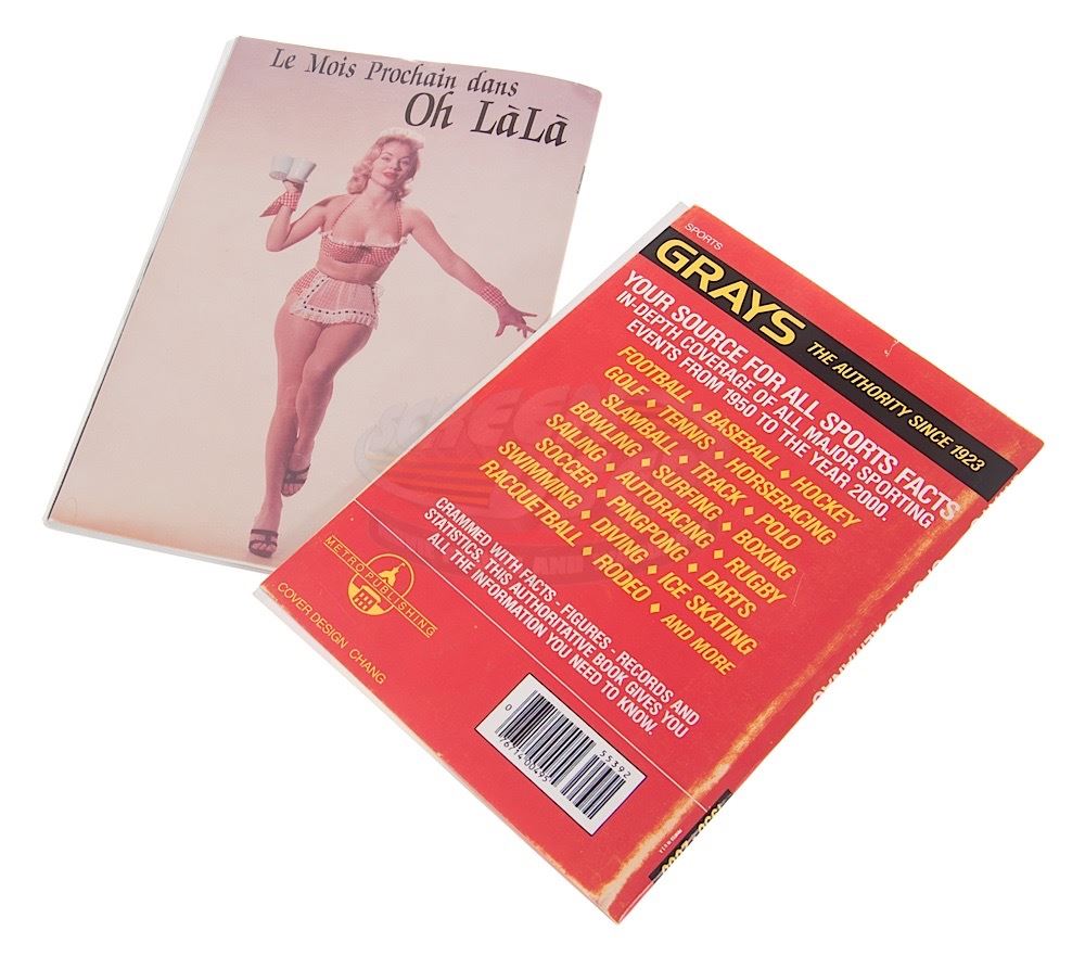 (Universal Pictures, 1989) This prop Oh La La magazine was custom-printed by the production for use by Tom Wilson as "Biff Tannen". The magazine has actual 1950's nude photo pages and remains in very good condition. Included with the Oh La La magazine is a production made Sports Almanac cover. The cover is an unused back-up that was never bound to a book for use.