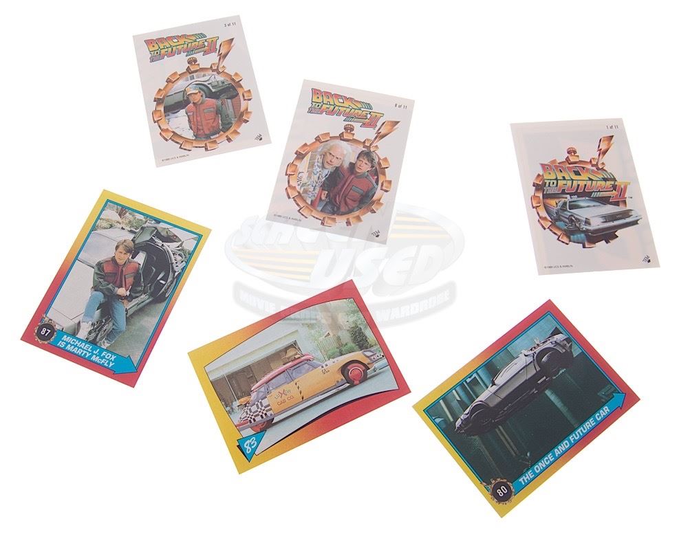 A rare Topps Back to the Future Part II advertisement poster and a complete set of trading cards and stickers. Poster is laminated and measures 14" x 10".