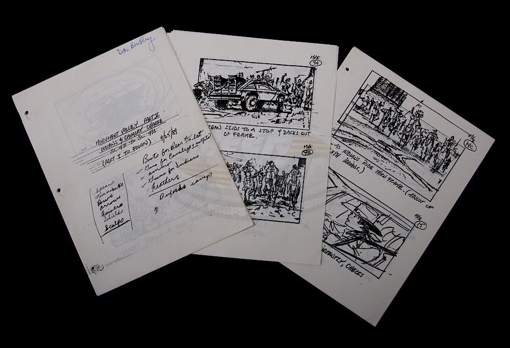 This is a set of original production used storyboards for the Indian Chase Sequence and were used by the film's 2nd Unit Prop Master, Daniel R. Bentley. The set consists of over 30 pages and is dated 9/25/89. Some wear from use is present.