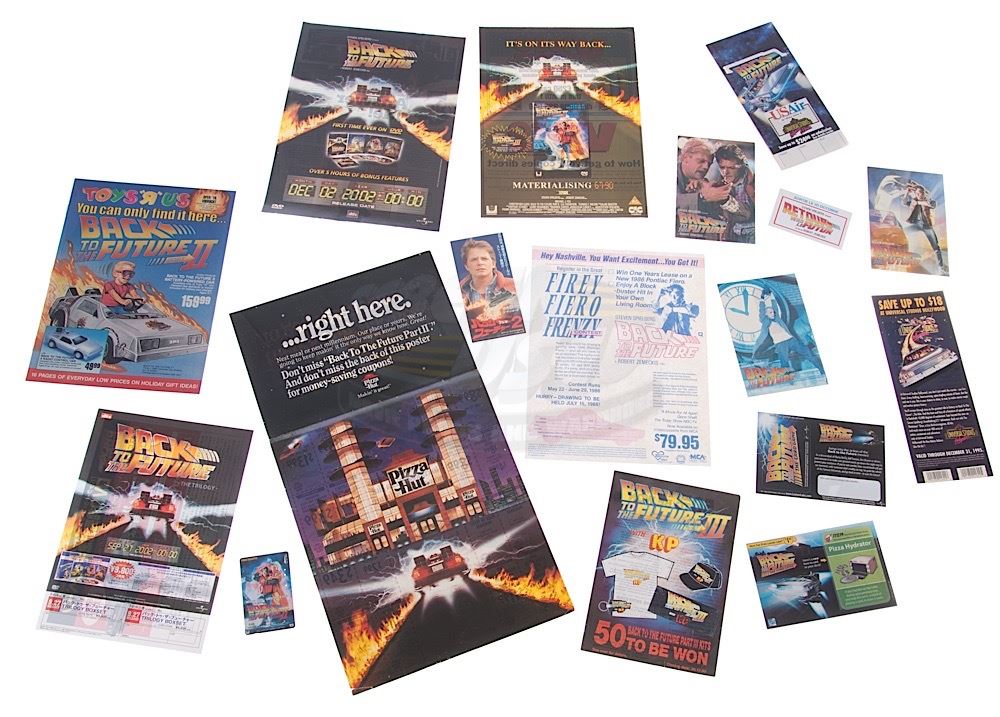 A seventeen piece collection of original Back to the Future related advertisements. The advertisements range in size from 3.25" x 2" to 19" x 10". Some of the advertisements were removed from magazines and others are full complete flyers.