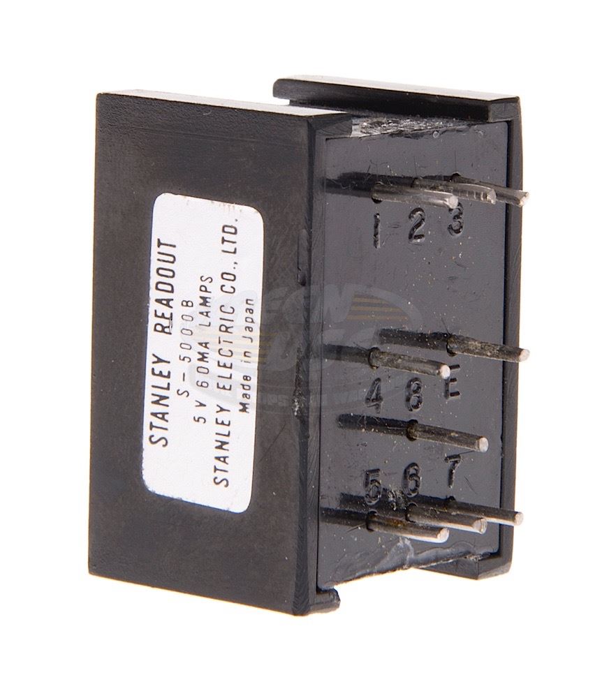 (Universal, 1985) This Stanley readout display was acquired by the production for use as part of the DeLorean Time Machine speed display. This type of digit was also used for Doc's remote control. The Stanley readout display is a "found" part as many of the time machine parts were and is an unused back-up acquired from a crew member that worked on the DeLorean Time Machine during pre-production. A very rare prop from the most recognizable time machine in film history. Measures 1.25" x .75" x 1".
