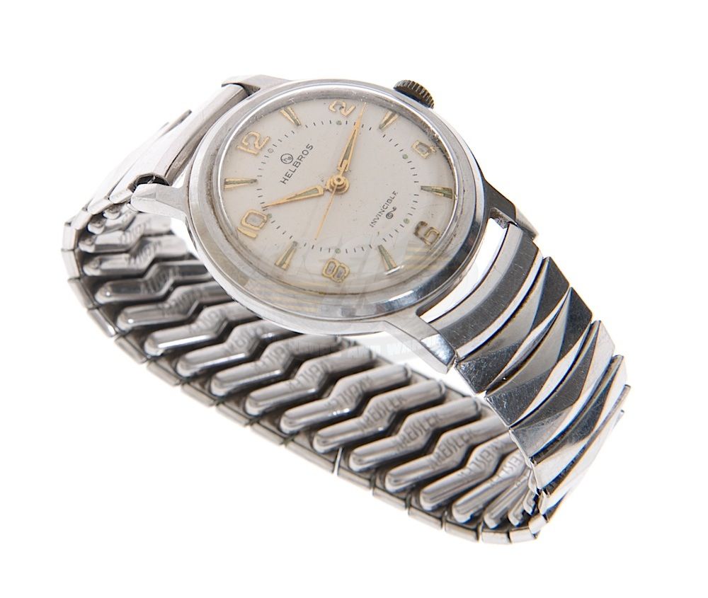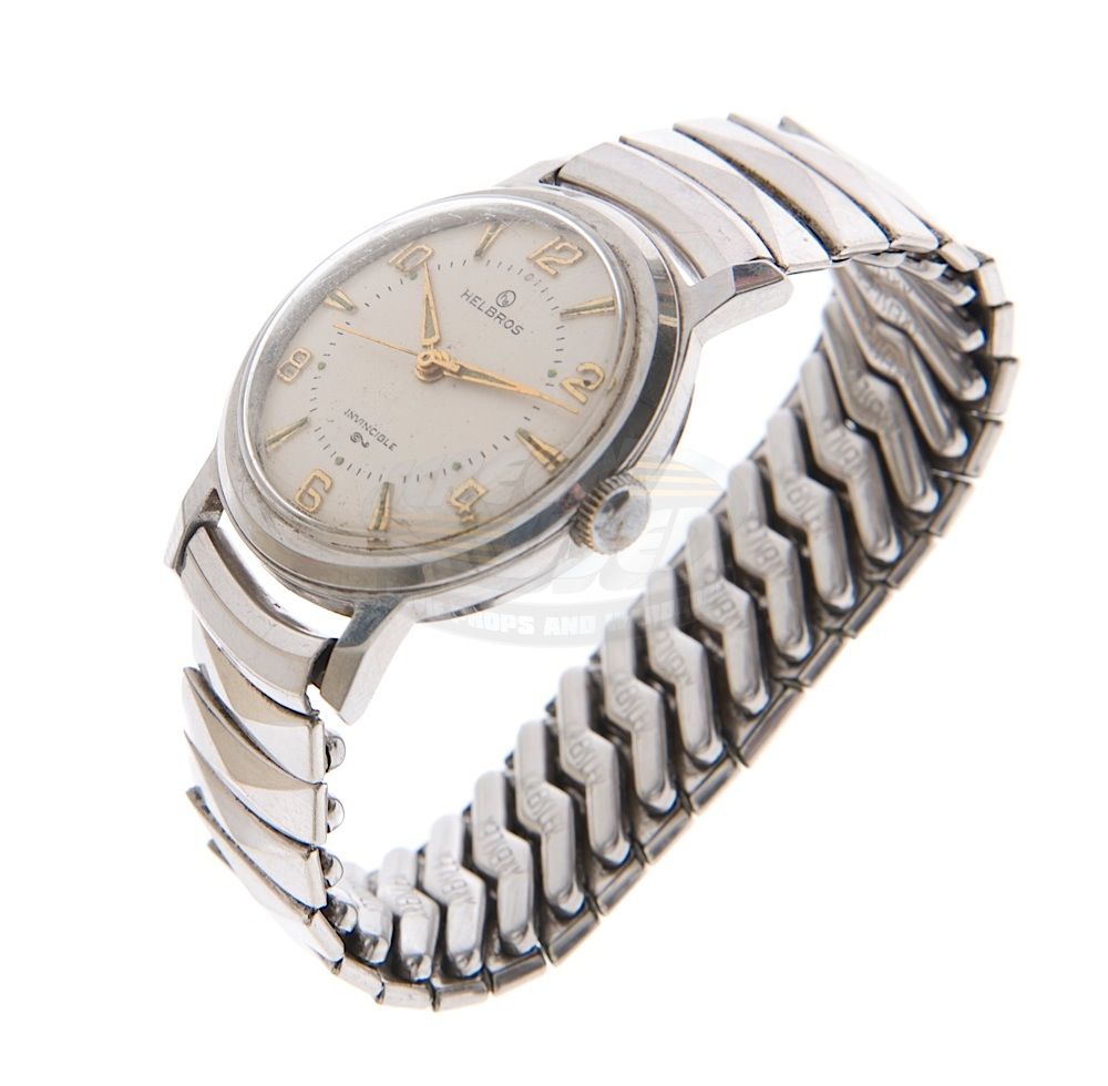 (Universal Pictures, 1985) This wristwatch was acquired by the production for use by Christopher Lloyd's stunt person during filming. The vintage stainless steel watch is made by Helbros and has minor wear from use and remains in working order. The watch seen on screen looks like it has a slightly darker color face. The ScreenUsed COA on this item is also signed by the Assistant Property Master of the film.