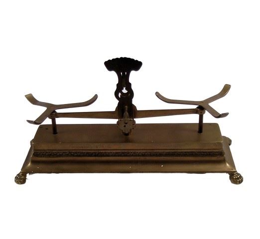 Back To The Future III Western Period Gold Scale Prop - "Back to the Future III" (1990) completed the adventures of Marty McFly and Dr. Brown. Perhaps one of the most favorite in the trilogy, since it went way back to the American West of the 1800's, where Marty got to play Seamus McFly (or as he called himself "Clint Eastwood"). This is a period western metal gold value scale used as a background set decoration prop in the western sequences of the production. (Approx. 13" x 4 1/2").