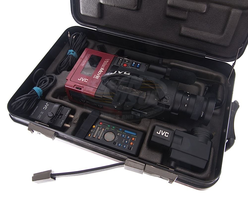 This video recorder is the same style that was purchased by the production for use by Marty & Doc during filming. The video recorder is made by JVC and remains in good condition with it's original carrying case and car battery cord, video/audio input and character generator included. This video recorder was not used in the making of the film and is untested. The handle on the carrying case is loose on one side.