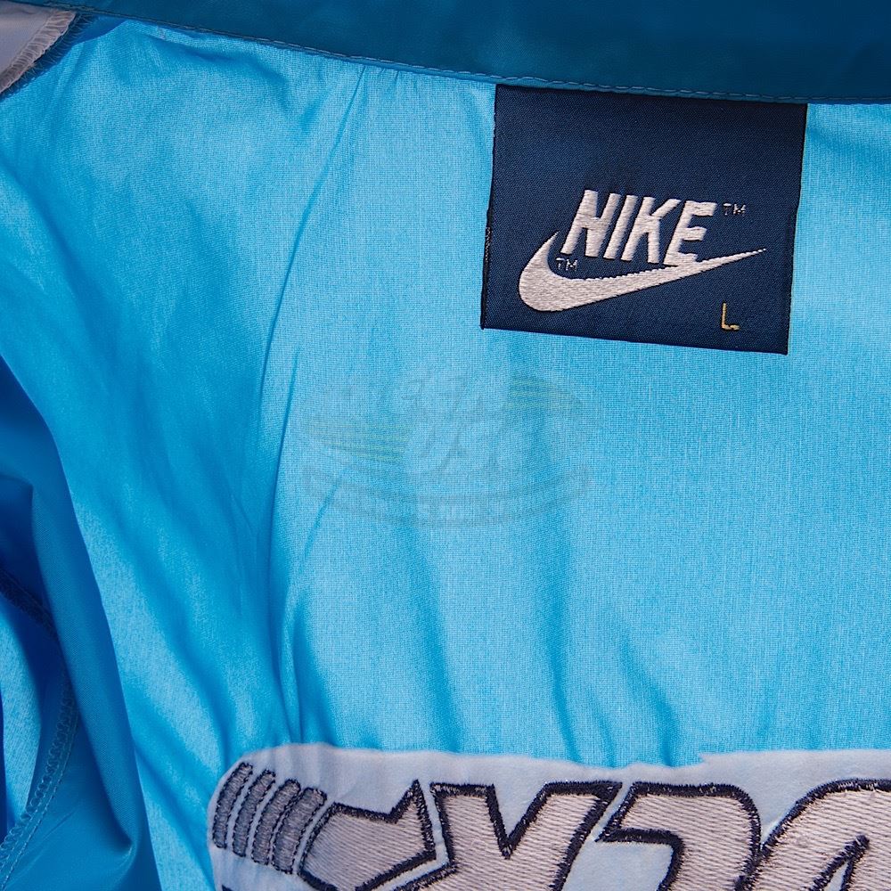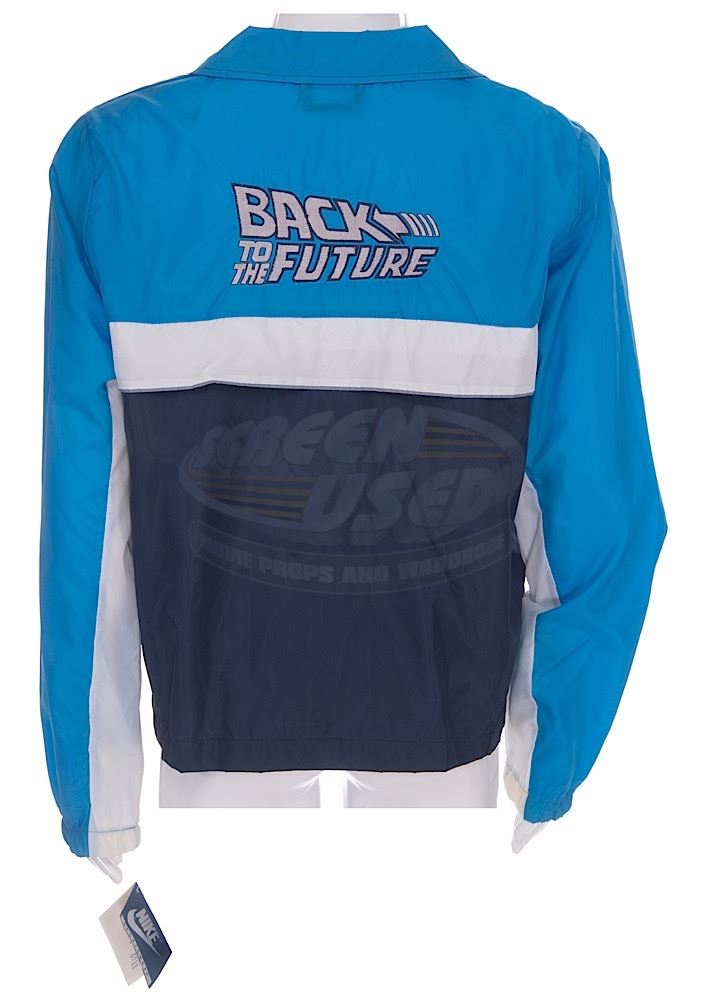 Rare Nike nylon windbreaker crew jacket with zip front closure. Produced before Nike had a much larger role in Back to the Future II. Embroidered with the Nike swoosh on the front and Back to the Future logo on the back. Men's size Large. Excellent condition.