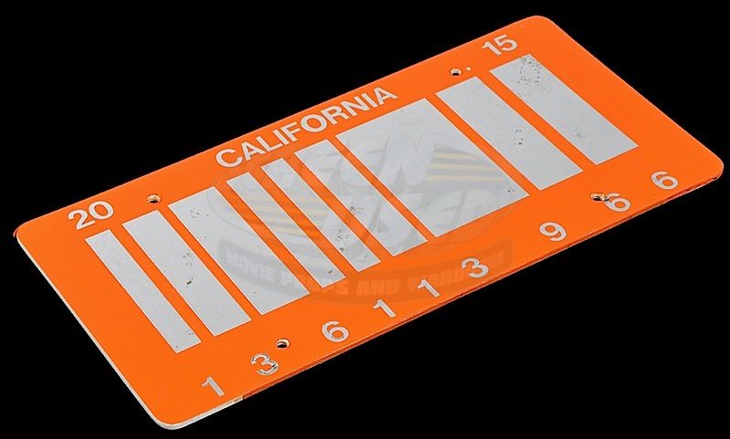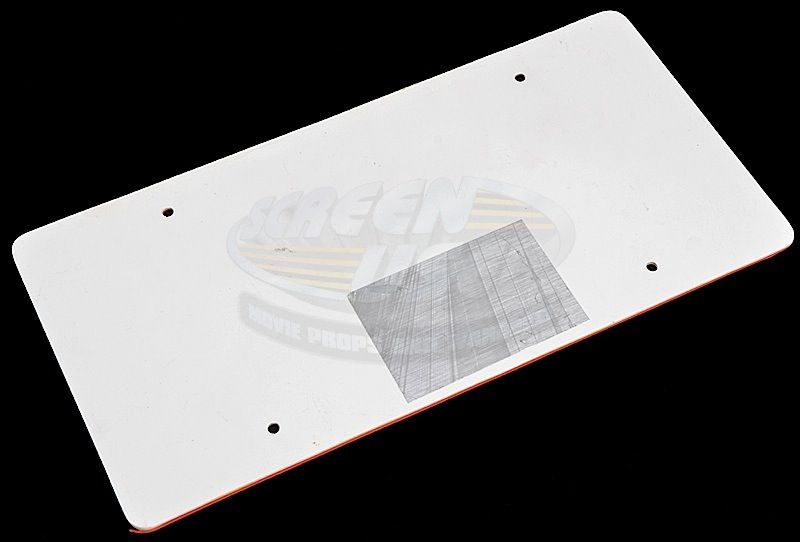 (Universal Studios) This license plate was custom made for use in the waiting rooms of Back to the Future the Ride at Universal Studios. It was displayed along with other items in the waiting rooms and is different in construction from the license plates used in the films.