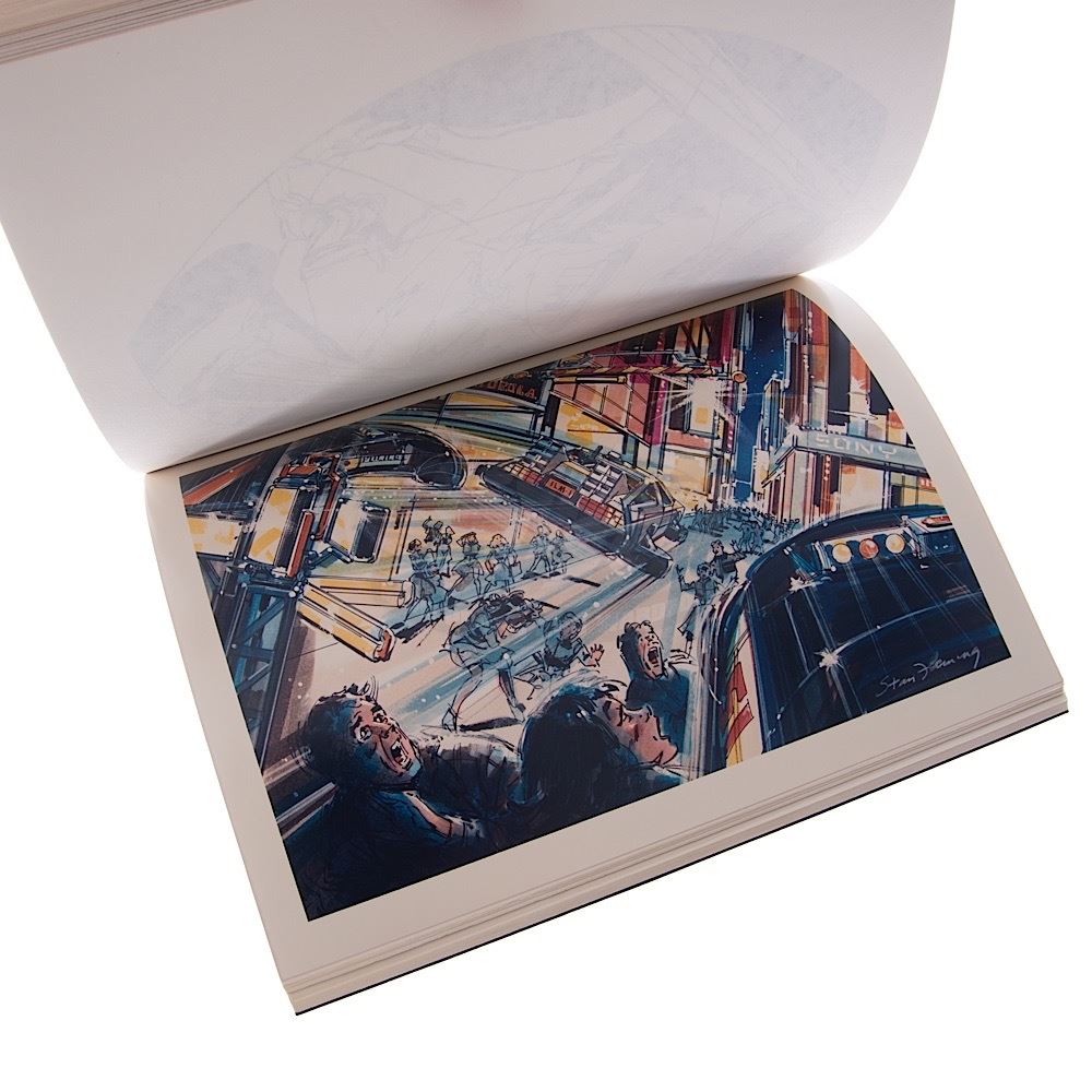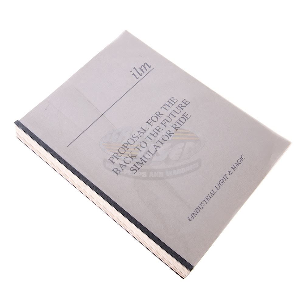 This is an incredibly rare Industrial Light & Magic proposal for the Back to the Future The Ride. The over one inch thick book details a ride experience that differs from the final product delivered to Universal Studios by Douglas Trumbull. The book was used in the pitch of ILM's service and ability to create a ride film that would live up to the Back to the Future franchise and features a full storyboard sequence of the ride and bullet points of discussion.