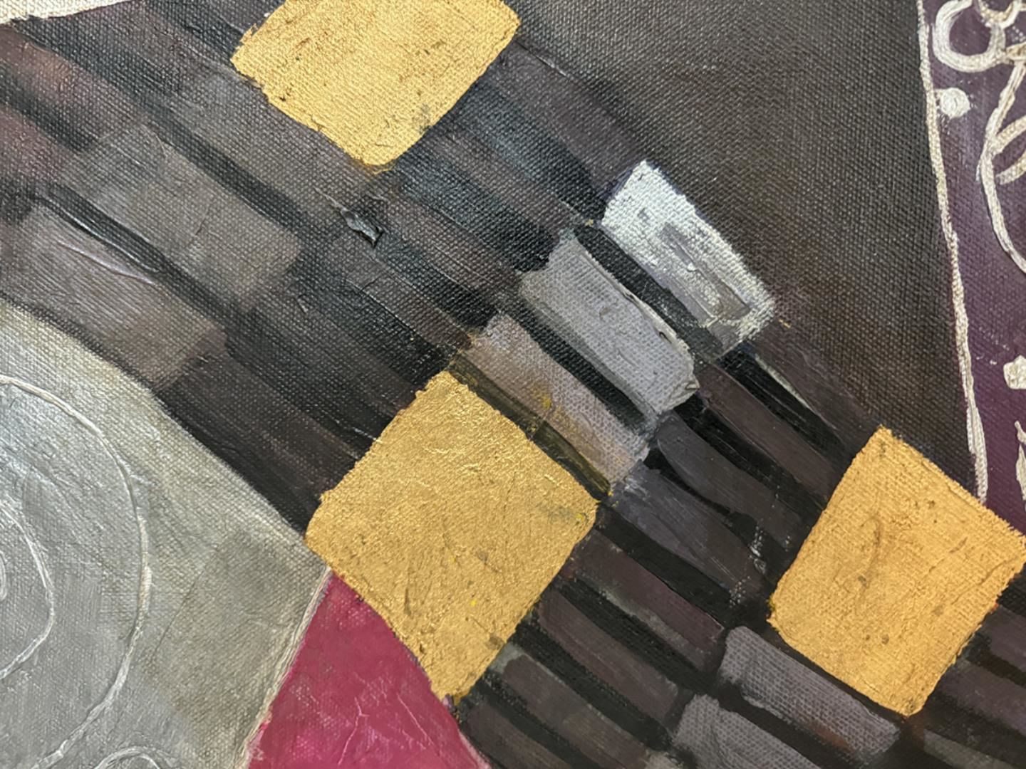 Striking original oil on linen. Hand signed by artist. This artwork comes beautifully framed and ready to hang Art size 48x48.