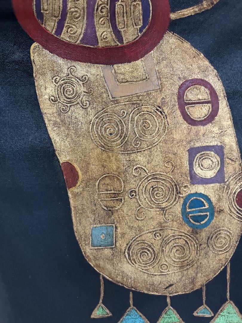 Striking original oil on linen. Hand signed by artist. This artwork comes beautifully framed and ready to hang Art size 48x48.