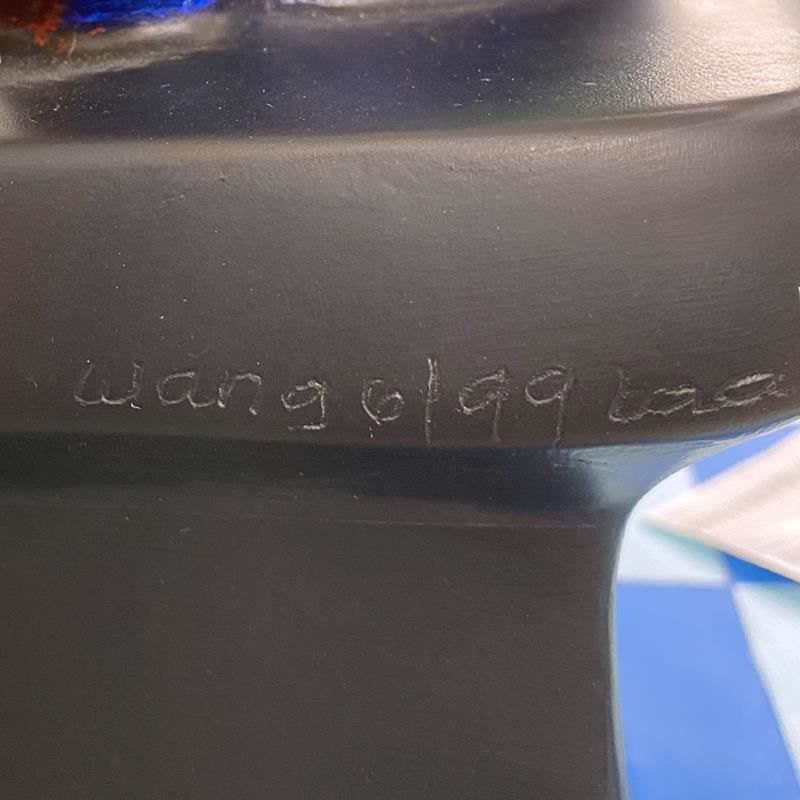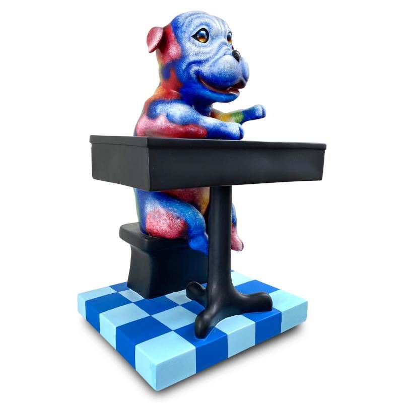"Back to School Blues" is a hand painted limited edition, dimensional art, resin sculpture by Wang. This piece is numbered 6/99 and hand signed in verso. Includes Letter of Authenticity. Measures approx. 24" x 15.5" x 12.5 (base with sculpture).