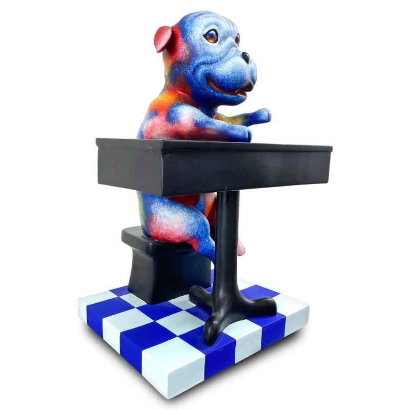 "Back to School Blues" is a hand painted limited edition, dimensional art, resin sculpture by Wang. This piece is numbered 12/99 and hand signed in verso. Includes Letter of Authenticity. Measures approx. 24" x 15.5" x 12.5 (base with sculpture).