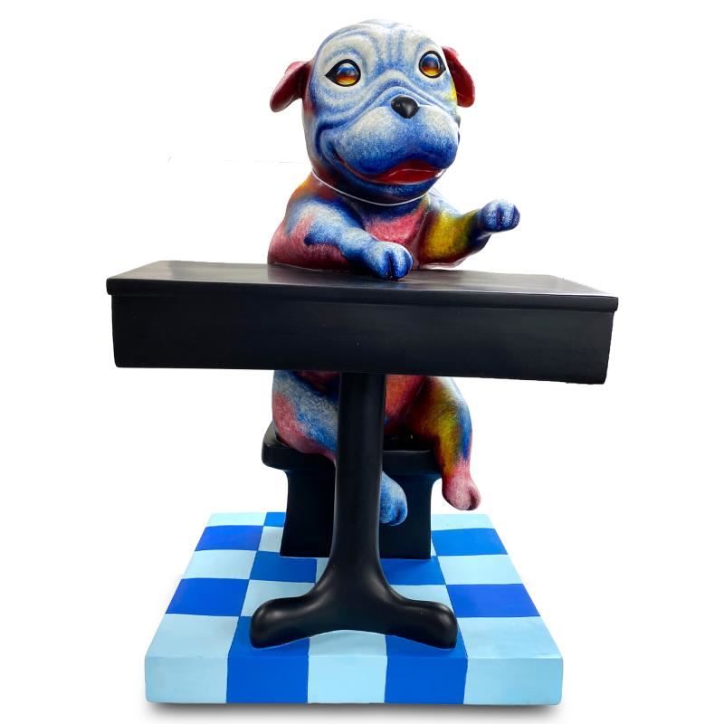 "Back to School Blues" is a hand painted limited edition, dimensional art, resin sculpture by Wang. This piece is numbered 2/99 and hand signed in verso. Includes Letter of Authenticity. Measures approx. 24" x 15.5" x 12.5 (base with sculpture).