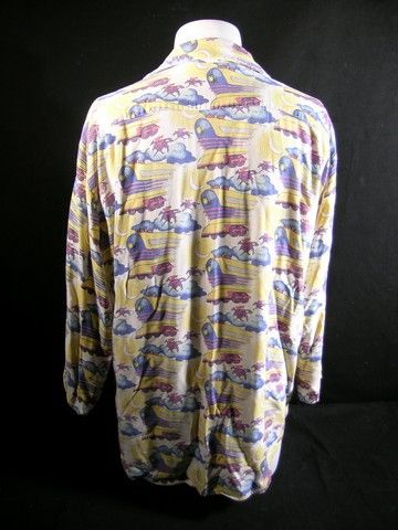 Lloyd's screen worn Doc Brown shirt from 'Back to the Future II' (1989). In Part 2, Doc Brown and Marty McFly (Michael J. Fox) travel to the year 2015 to fix a future event regarding Marty's kids. This long sleeve shirt features a one-of-a-kind colorful 'train and cowboy' pattern. The shirt can be seen prominently during the visit to the 'antique' store where Marty purchases the Gray's Sports Almanac, which ultimately changes the time continuum, and throughout the film. A signature prop from one of the most popular film franchises in recent memory. This piece was acquired directly from Christopher Lloyd from the costumer on the film and reads DBL as this was a duplicate shirt that was worn by him and featured in the movie and also in major television and media promotions for the release. Includes letter of provenance.