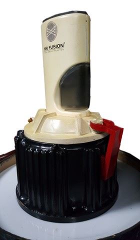 Featured in Back To The Future Part I (1985) and Part II (1989) is the ever popular hero Mr. Fusion Home Energy Reactor used on screen by Dr. Emmet Brown (Christopher Lloyd). This is beautifully mounted on a stand in a shadow box. Comes direct from the Electric Image Studios collection, a premiere special effects company who provided 3D visual effects and software to numerous hit television shows and blockbuster features. Letter of provenance included. Measures approximately 70 1/2" x 21" in diameter.