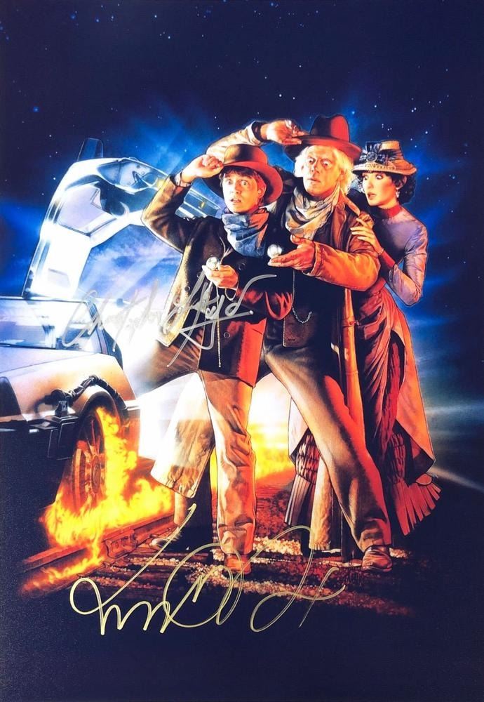 Back to the Future signed movie photo autographed by Michael J. Fox and Christopher Lloyd. 8x10 inches