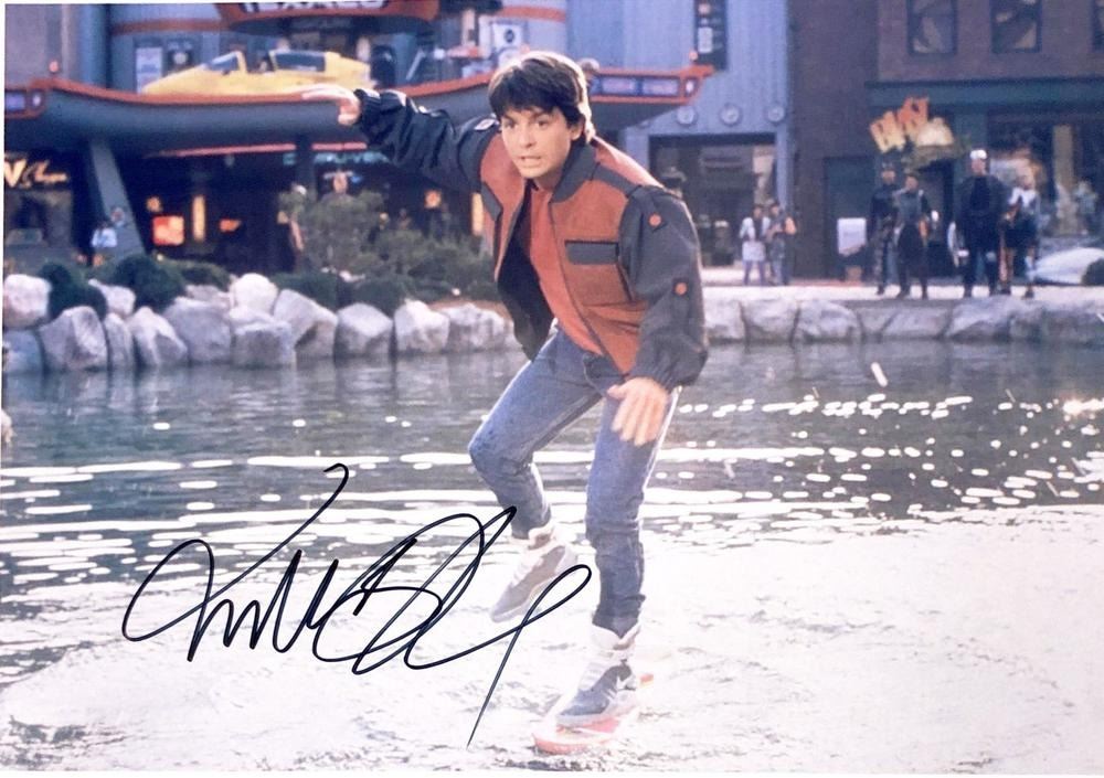 Back to the Future facsimile signed movie photo autographed by Michael J. Fox. 8x10 inches. This item is a reprint of an original autograph.