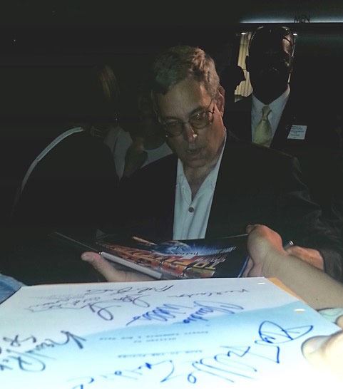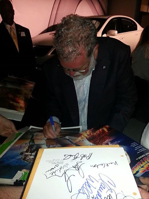 Brad-bound souvenir fourth draft script for the 1985 science fiction comedy Back to the Future, 132 pages, 8.5 x 11, signed on the title page in blue or black felt tip by eight cast and crew members, including: Lea Thompson, Claudia Wells, Donald Fullilove, Alan Silvestri (composer), Neil Canton (producer), Dean Cundey (cinematography), Bob Gale (writer), and Kevin Pike (special FX). In fine condition. Consignor notes that the signatures were obtained in person at the Back to the Future 30th anniversary concert at the Hollywood Bowl on June 30, 2015, and at the 'Last Remaining Seats' initiative at the Ace Hotel Theater on June 21, 2014; handbills for each are included, with the latter signed in black felt tip by event host Leonard Maltin.