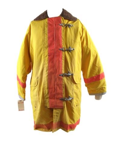Direct from the set of director Ron Howard's Academy Award winning Backdraft (1991) is Stephen 'Bull' McCaffrey'/Dennis McCaffrey's (Kurt Russell) rare yellow and orange Test fireman jacket. "Russell" is inscribed inside the jacket. This was used by the wardrobe department and production as a test jacket and worn by Kurt Rusell on set, however did not ultimately appear on screen.