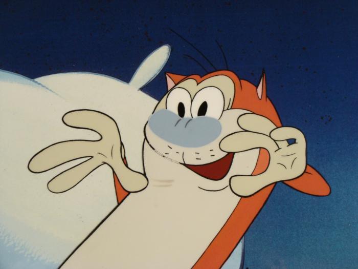This original production art cel and reproduction background is from the Nickelodeon TV show Ren & Stimpy. The show follows two characters - Ren, a crazy Chihuahua - and - Stimpy, an incredibly stupid cat - as they think up to all kinds of hair brained schemes and get themselves into some sticky situations. The Ren and Stimpy Show debuted in August 1991 with a two-part episode, 'Stimpy's Big Day / The Big Shot' and became an instant hit. It was the third Nicktoon ever to be aired on the Network alongside Doug and Rugrats. Original Production Art Cel and Reproduction Background Overall Size of Cels: 10 1/2" x 12 1/2" Over Size of Background: 11" x 15" Excellent condition This is an original hand-painted cel set-up used in the production of an episode of "The Ren & Stimpy Show." Each one-of-a-kind set-up represents a slight change in position of the characters. When individually photographed and projected in rapid succession, the images appear to move.