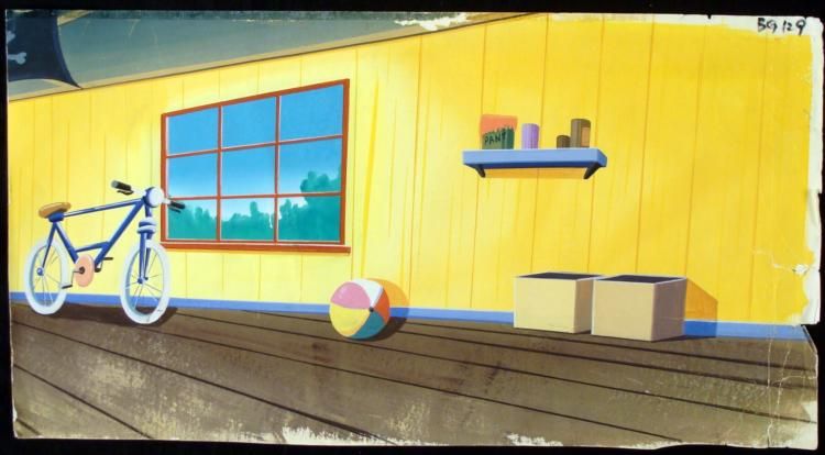 <!--[if gte mso 9]><xml> * <w:WordDocument> * <w:View>Normal</w:View> * <w:Zoom>0</w:Zoom> * <w:PunctuationKerning/> * <w:ValidateAgainstSchemas/> * <w:SaveIfXMLInvalid>false</w:SaveIfXMLInvalid> * <w:IgnoreMixedContent>false</w:IgnoreMixedContent> * <w:AlwaysShowPlaceholderText>false</w:AlwaysShowPlaceholderText> * <w:Compatibility> * <w:BreakWrappedTables/> * <w:SnapToGridInCell/> * <w:WrapTextWithPunct/> * <w:UseAsianBreakRules/> * <w:DontGrowAutofit/> * </w:Compatibility> * <w:BrowserLevel>MicrosoftInternetExplorer4</w:BrowserLevel> * </w:WordDocument> * </xml><![endif]--> * * Moving into a new place can be so refreshing. Here in this empty room, the unpacking has only begun; a bicycle, a ball, few boxes, and a pirates flag... Not a bad start. * * Original Animation BackgroundSize: 10" x 18 1/2"Condition: Good; some damage to the top and sides * Original Animation Backgrounds are used in the making of the final version * of animated productions. The background establishes the location and the * overall good mood of the scene. Typically, a background layout artist * creates a drawing to establish the content of the scene, placement of * characters, perspective and camera angle. Based on this drawing, the * background artist creates a preliminary painting to confirm all of the scenes * details, then the final production background which is used in the filming of * the scene. When these backgrounds are individually photographed behind * the progression of production cels, and projected at a rapid succession, the * images in the foreground appear to move, creating an animated scene. * * The background is ready to be matted and framed, with the animators notations located at the top. * * * * <!--[if gte mso 9]><xml> * <w:LatentStyles DefLockedState="false" LatentStyleCount="156"> * </w:LatentStyles> * </xml><![endif]--><!--[if gte mso 10]> * <style> * /* Style Definitions */ * table.MsoNormalTable * {mso-style-name:"Table Normal"; * mso-tstyle-rowband-size:0; * mso-tstyle-colband-size:0; * mso-style-noshow:yes; * mso-style-parent:""; * mso-padding-alt:0in 5.4pt 0in 5.4pt; * mso-para-margin:0in; * mso-para-margin-bottom:.0001pt; * mso-pagination:widow-orphan; * font-size:10.0pt; * font-family:"Times New Roman"; * mso-ansi-language:#0400; * mso-fareast-language:#0400; * mso-bidi-language:#0400;} * </style> * <![endif]-->