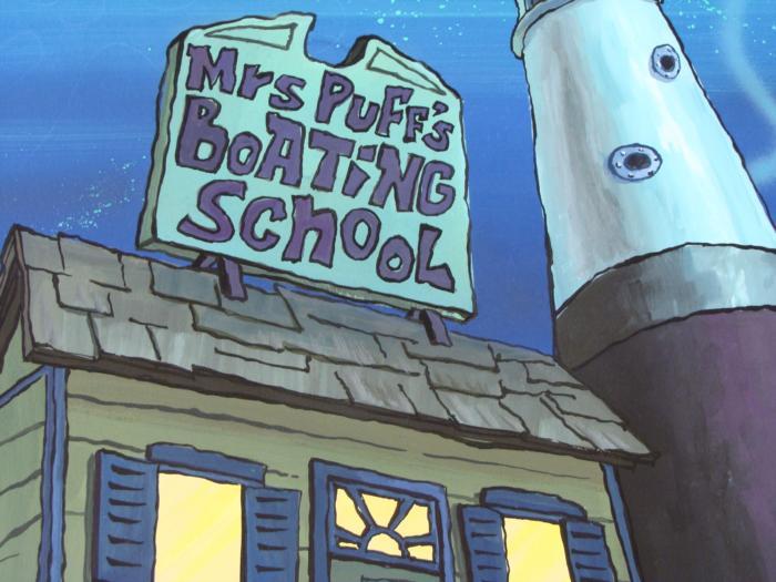 This original hand-painted background from the Nickelodeon TV show SpongeBob Squarepants. The story takes place under the deep blue sea in Bikini Bottom, where SpongeBob resides. SpongeBob, who is a yellow, porous sponge, is your typical happy-go-lucky character, as he is always cheerful and enjoys making people laugh. Patrick Star, SpongeBob's neighbor who is a starfish, is your average children's show idiot, as he boasts knowing nothing and is often getting himself into ridiculous situations. Between the homes of these two lies the home of the miserable Squidward, a squid, who is known for being grouchy and playing tricks on SpongeBob and Patrick. Both SpongeBob and Squidward work at the Krusty Krab, a fast food business run by the greedy money-loving Mr. Krabs, a crab, the arch rival of the evil, possibly misunderstood, Plankton. Another neighbor, Sandy Cheeks, an athletic squirrel who normally wears an astronaut's space suit, was introduced in "Tea at the Treedome." She spends most of her time inventing and experimenting. Come and join Mrs. Puff's Boating School today!Original Production Background Overall Size of Background: 10 1/4" x 14 1/4" Very good condition; it has been stored Original Production Backgrounds are used in the making of the final version of animated productions. The background establishes the location and the overall good mood of the scenee. Typically, a background layout artist creates a drawing to establish the content of the scene, placement of characters, perspective and camera angle. Based on this drawing, the background artist creates a preliminary painting to confirm all of the scenes details, then the final production background which is used in the filming of the scene. When these backgrounds are individually photographed behind the progression of production cels, and projected at a rapid succession, the images in the foreground appear to move, creating an animated scene. The background is ready to be matted and framed. It is a colored background with the animator's notations at the bottom.