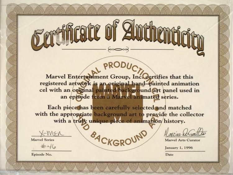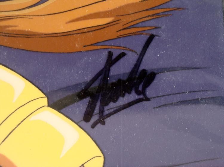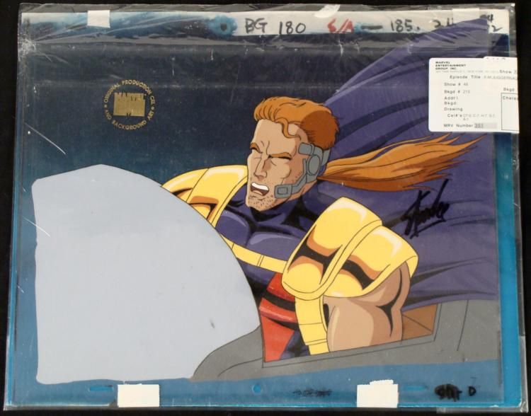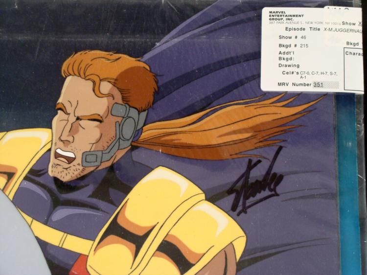 This is an original signed production cel and background are from the hit series X-Men. Stan Lee signature is located at the right of cel in black sharpie. * Under a cloud of increasing anti-mutant sentiment, Professor Xavier creates a haven at his Westchester mansion to train young mutants to use their powers for the benefit of humanity, and to prove mutants can be heroes. Xavier recruited Cyclops, Iceman, Angel, Beast and Jean Grey calling them "X-Men" because they possessed the "x-gene", an ability normal humans lacked. Early issues introduced the team's arch enemy, Magneto and his Brotherhood of Evil Mutants, who would later battle the X-Men for years. * This is greatest day of life, for reasons I can't explain... * Original Animated Cel Overall Size of the Cel: 10 1/2" x 12 1/2" Overall Size of the background: 10 1/2" x 13" Excellent Condition This is an original hand-painted cel set-up used in the production of an episode of X-Men titled "Juggernaut." Each one-of-a-kind set-up represents a slight change in position of the characters. When individually photographed and projected in rapid succession, the images appear to move. * To create production cels, the original animator's drawing is transferred onto an acetate cel (by hand-inking and/or photo copying). The cel is then hand-painted on the reverse side. The background accompanying this set-up is an original production background. * The cel and original background is ready to be matted and framed. The animators notations are located at the bottom of cel and top of the background. A ceritificate of Authenticity from Marvel is on the back of background. The Marvel Seal is located at the top left of the cel. The cel and background are in a protective sleeve An information card about the episode is located at the top right of the protective sleeve. *
