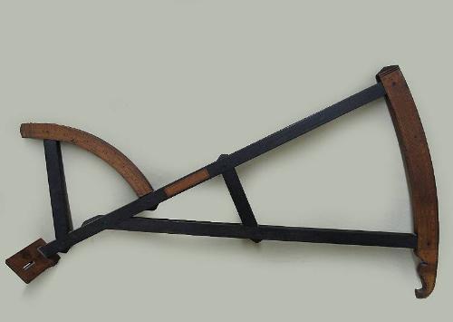 Backstaff (or Davis Quadrant) an early seafarers navigational tool; 18th or early 19th C.; 25" x 17" (wood chip on handle, repainted)