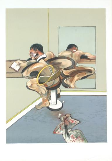 Reference #: ULXX6915 Artist Name: Bacon, Francis Title: Figure Writing Reflected in a Mirror Medium: Lithograph Edition Size: Unknown Year: Unknown Paper Size: 41 x 28.5 inches Image Size: 33.5 x 25 inches Condition: A-: Near Mint, very light signs of handling Notes: Beautiful Lithograph printed on Arches Paper, unsigned and unnumbered proof.