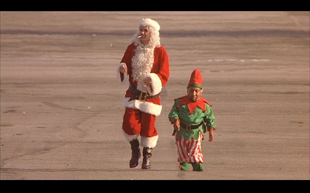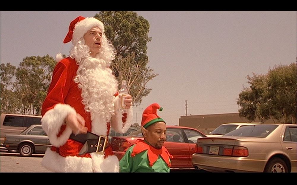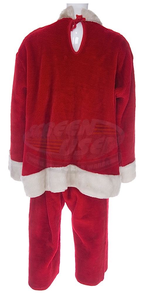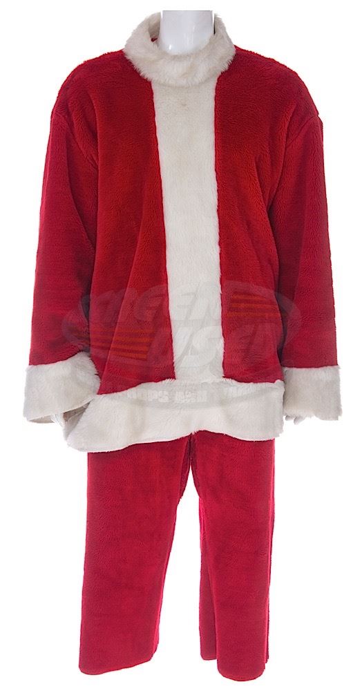 (Columbia Pictures, 2003) This Santa Suit was custom-made by the production for use by Billy Bob Thornton as "Willie", and is the icon costume of the film. The costume consists of a pullover style jacket with white trim and a pair of matching pants. The costume is distressed for filming, but remains in good condition.