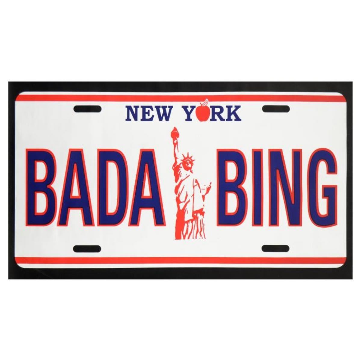 "Bada Bing" is a hand pulled limited edition silkscreen on canvas by Andy Warhol protege Steve Kaufman (1960-2010). This piece is AP numbered 4/50 and hand signed inverso. Includes Certificate of Authenticity. Measures approx. 46" x 24" (image). Please note: there are minor creases in the canvas that will likely be concealed when the piece is stretched.