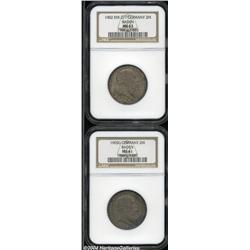 Baden. Friedrich I 2 Mark pair as follows: 1902, KM271, MS63 NGC; and a 1905G, KM272, MS61 NGC. 2 coins Important notice: Heritage usually auctions material at the rate of 200-250 lots per hour. On some occasions eBay Live bid software or the Internet may not be able to keep up with the pace of the auction. We recommend placing a realistic absentee bid now as insurance to avoid disappointment. Occasionally the auctioneer may eliminate or reject an eBay Live bid, and the auctioneer may also reopen a lot after the close of the eBay live bidding (usually because we missed an audience bid), and may reject your bid even if it shows you as the winning bidder. By bidding via eBay Live, you agree that Heritage may award the lot to another bidder at its sole discretion under the circumstances described above or any other reasonable circumstances. Also please note that all Heritage lots purchased through eBay Live carry a 20% Buyer's Premium. Please make sure you read the Terms and Conditions before you bid.