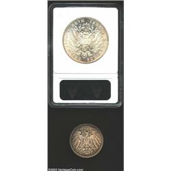 Baden. Friedrich II 3 Mark 1908G, KM280, MS64 ANACS and Empire Mark 1911E KM14, Toned Choice UNC. 2 coins Important notice: We expect to be auctioning lots at the rate of 200-250 per hour. Sometimes eBay Premier live bid software cannot keep up with that pace, so we strongly recommend that you place a realistic proxy bid now as insurance to avoid disappointment. Also please note that all Heritage/CAA lots purchased through eBay Premier carry a 20% Buyer's Premium. Please make sure you read the Terms and Conditions.