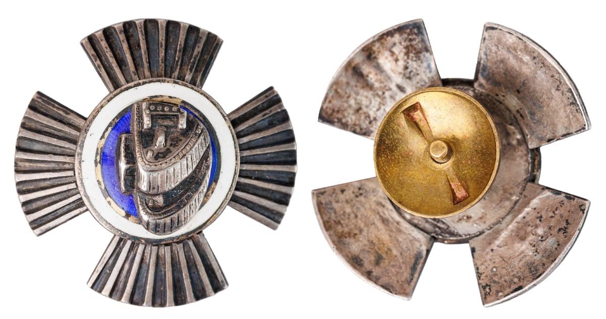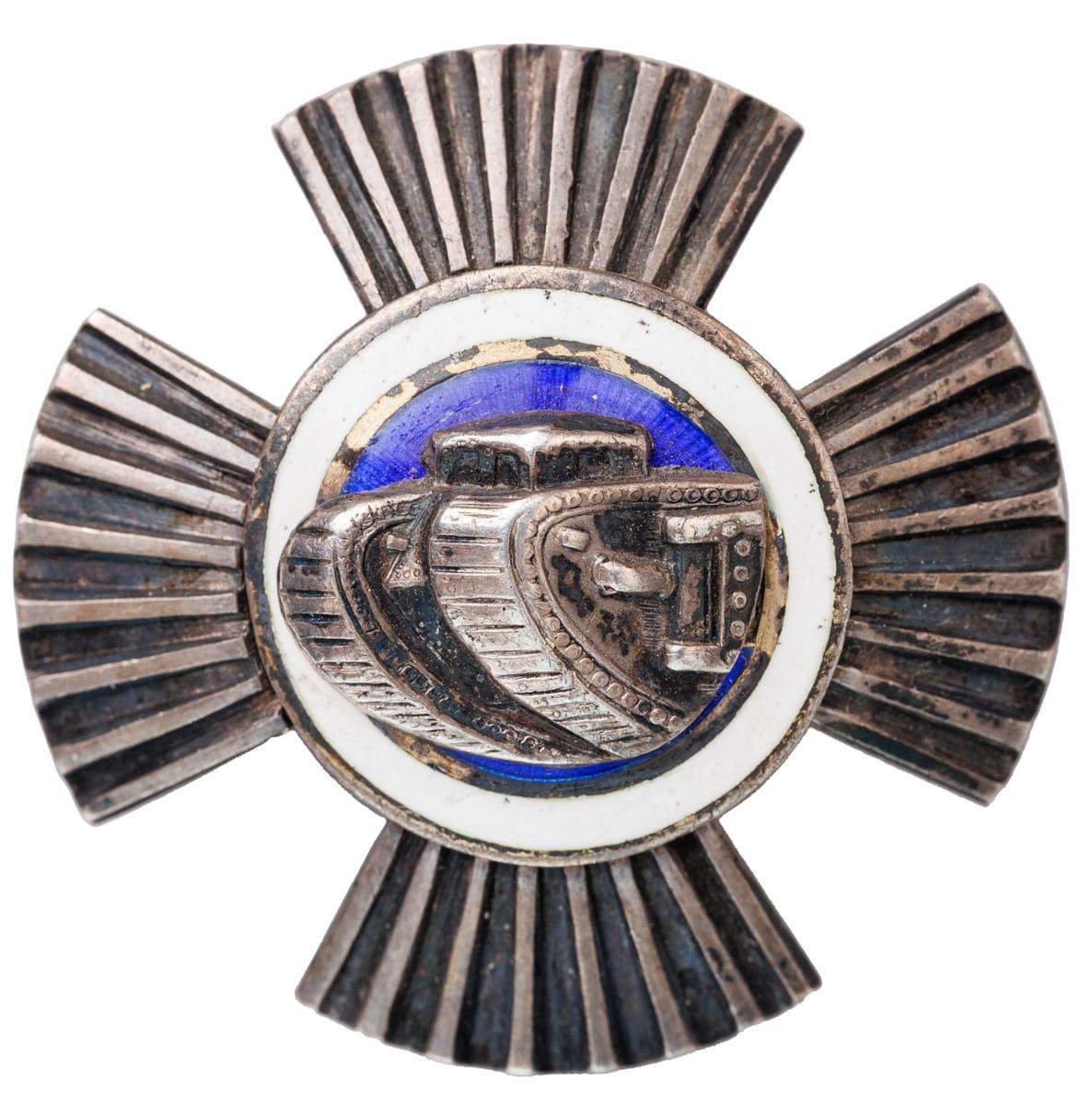 Badge, Auto-tank Regiment, Silver, Latvia 20ies of 20th century, Size 44.1 x 44 mm, Missing Nut