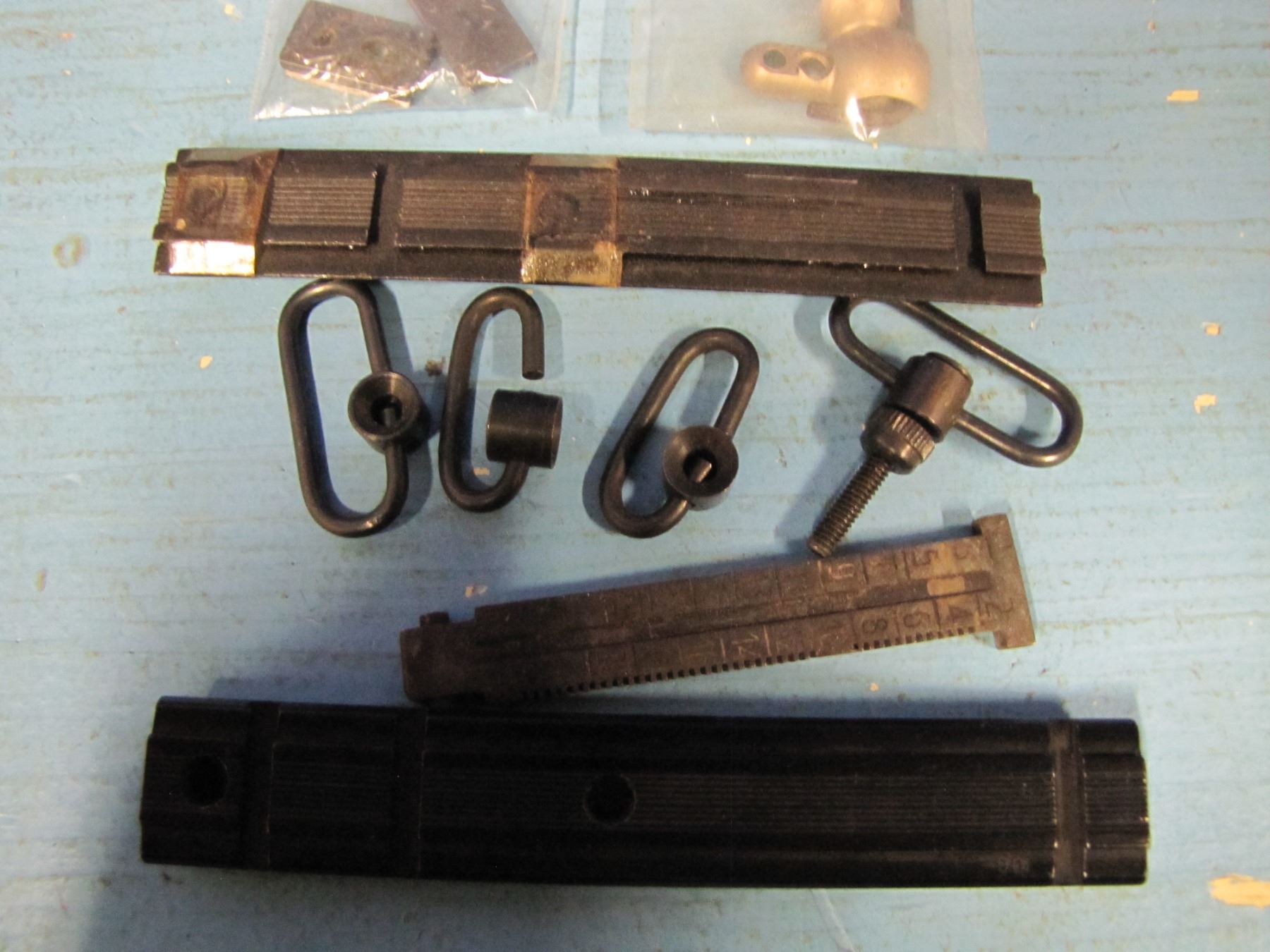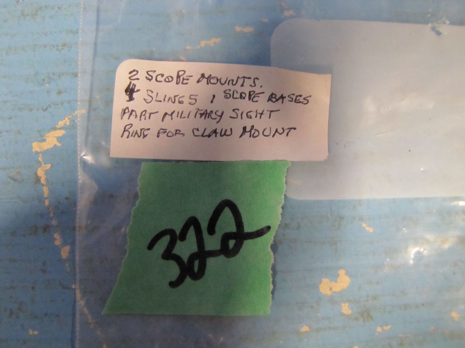 Bag- 2 scope mounts, 4 slings scope bases, part of military sight ring for claw mount