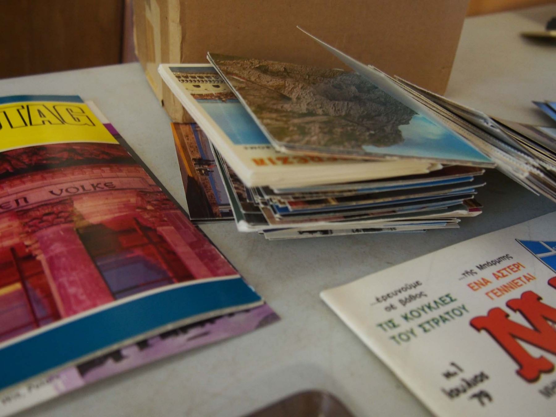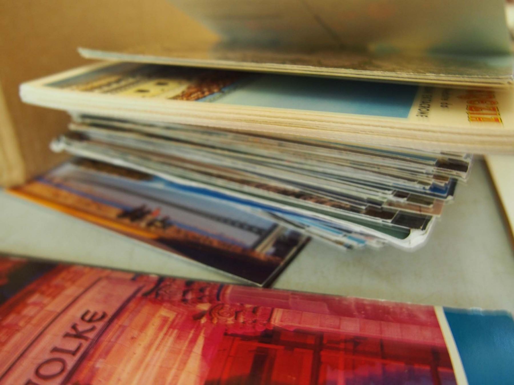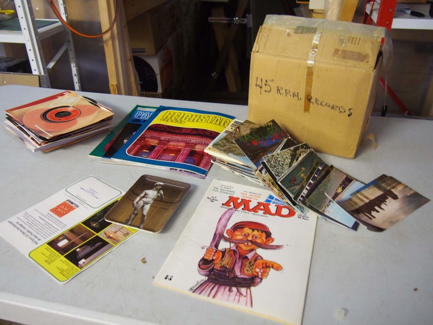 Bag Full Of Vintage Postcards And a Box Full Of 45 Records With Misc.