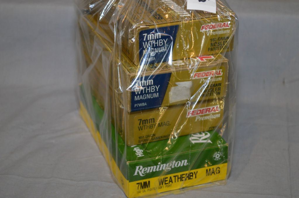 Bag Lot : 1 Box ( 20 rnds ) Rem .7 MM Wthby Mag 140 Grain Ammo - 2 Boxes ( 20 rnds per ) plus 8 rnds Federal .7 MM Wthby Mag Cal 160 Grain Ammo