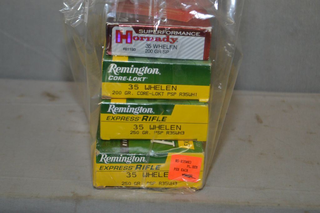 Bag Lot : 2 Boxes Remington Factory .35 Whelan Cal Ammo 250 Grain PSP - 1 Box Remington Factory .35 Whelan Cal Ammo 200 Grain PSP - 1 Box Hornady Super Performance .35 Whelan Cal Ammo 200 Grain SP