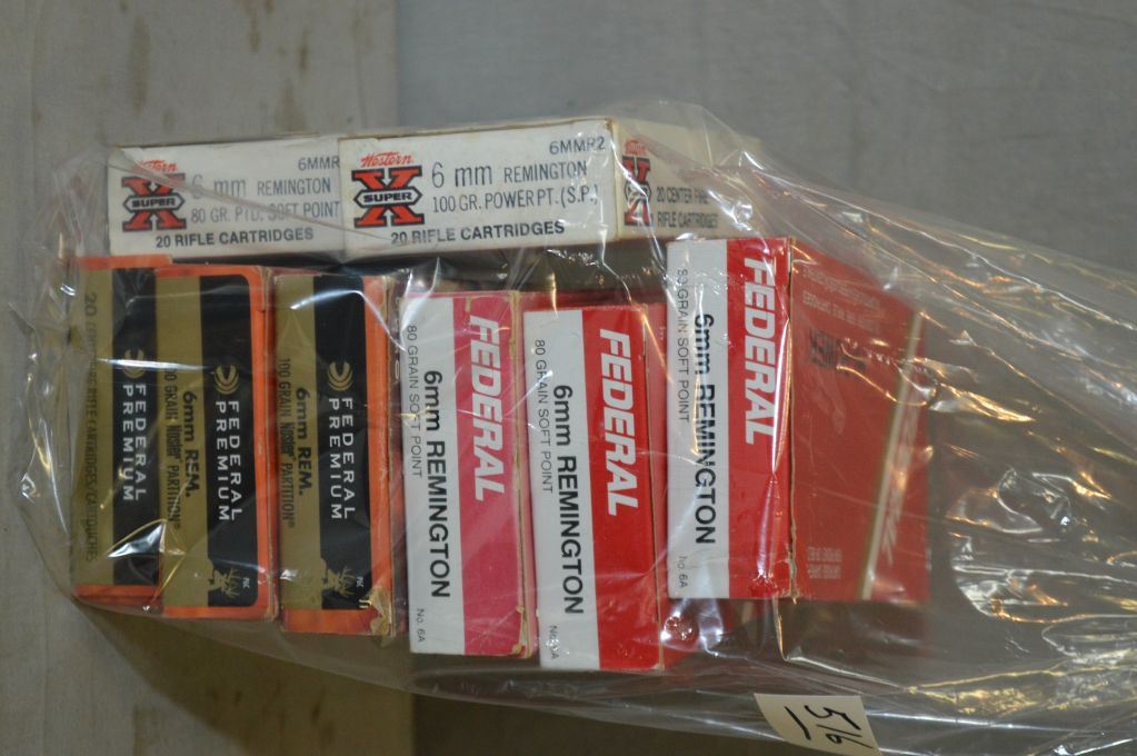 Bag Lot : 3 Boxes ( 20 rnds per ) Federal Hi Power .6 MM Remington 80 Grain SP - 3 Boxes ( 20 rnds per ) Federal Premium .6 MM Rem Ammo 100 Grain Nosler Partition - 1 Box ( 16 rnds ammo, 4 brass ) Western Super X .6 MM Rem Cal 80 Grain PSP - 1 Box ( 20 rnds per ) Western Super X .6 MM Remington 100 Grain PSP