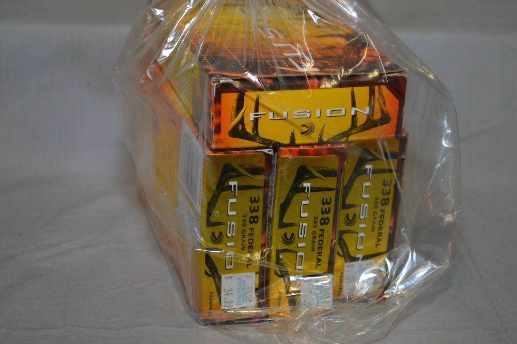 Bag Lot : 3 Boxes ( 20 rnds per ) plus 15 rnds & 4 brass Fusion .338 Federal 200 Gr Ammo