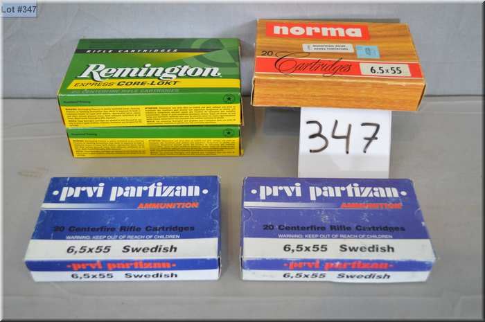 Bag Lot : 5 Boxes ( 4 have 20 rnds, 1 has 15 rnds ) 6.5 x 55 Swedish Mauser Ammo [ 2 boxes Rem 140 gr - 2 boxes Prvi 139 gr - 1 box Norma ( 15 rnds only )