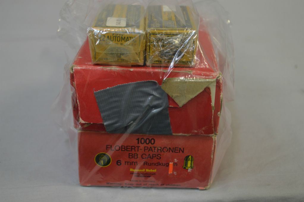 Bag Lot : Approx. 2000 .6 MM Flobert BB Caps in ( 20 - 100 Rnd Plastic Containers ) - Two Boxes ( 50 rnds per ) Super Clean Winchester 1903 .22 Win Auto Cal Ammo