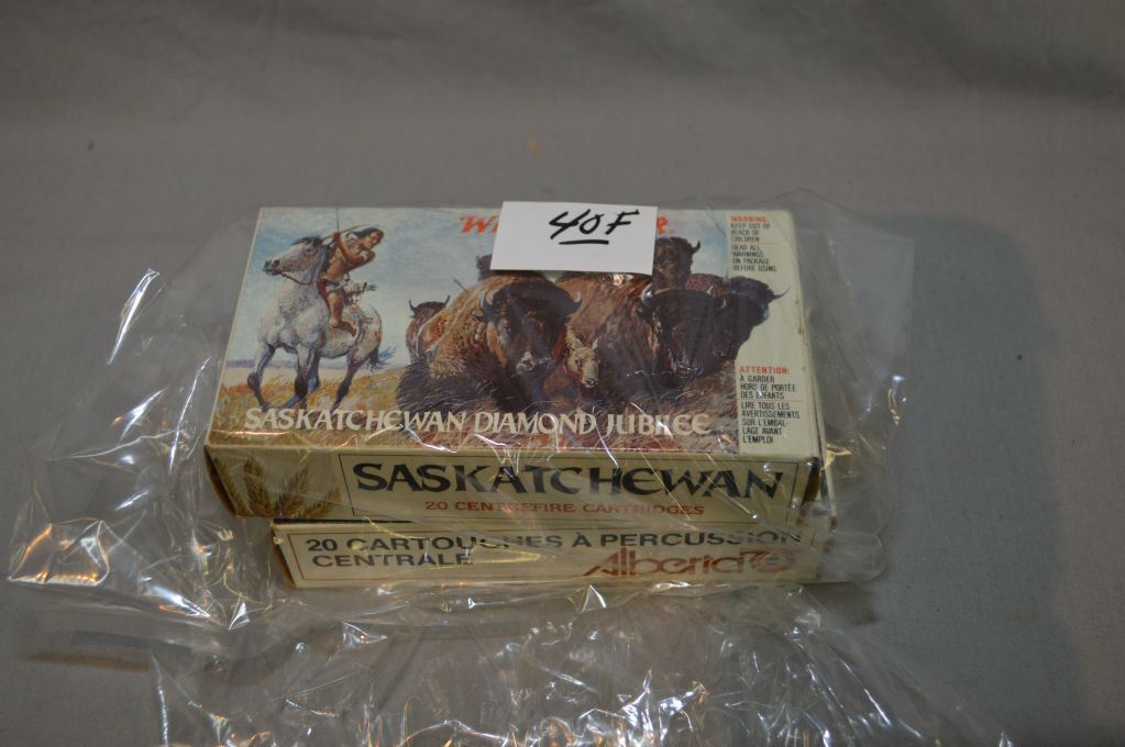 Bag Lot : Box Saskatchewan Diamond Jubilee Comm .38 - 55 cal Ammo - Box Alberta Diamond Jubilee Comm .38 - 55 cal Ammo