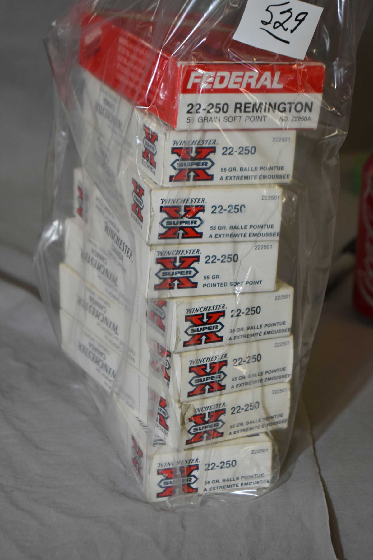 Bag Lot : Eight Boxes ( 20 rnds per ) .22 - 250 Rem Cal Ammo