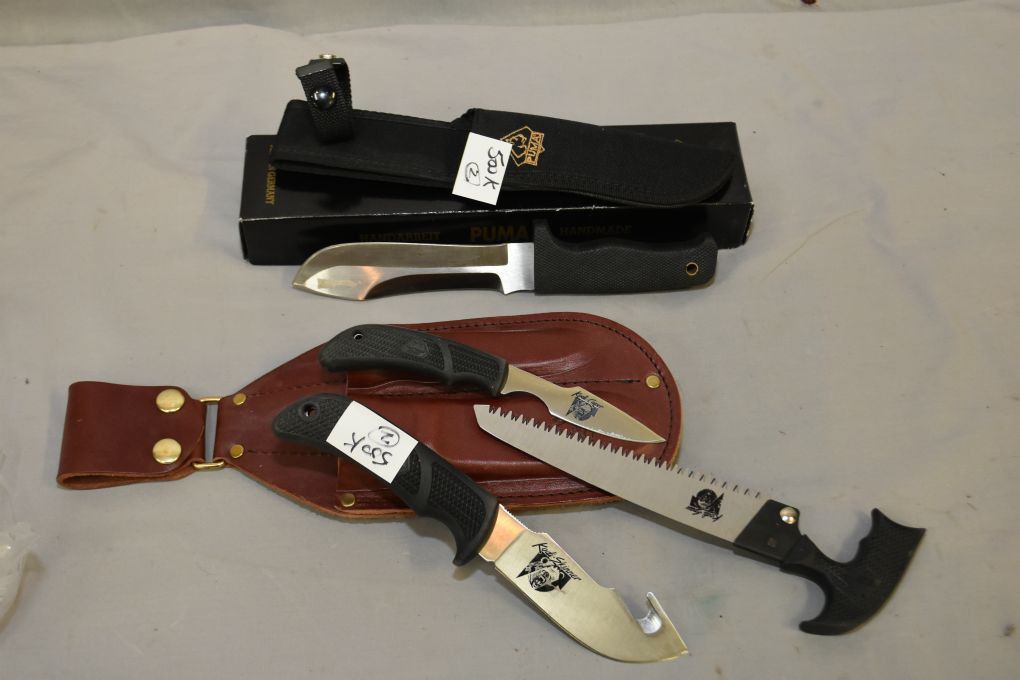 Bag Lot : Puma Knife in box w/web case - Outdoor Edge Double Knife & Saw , w/leather sheath