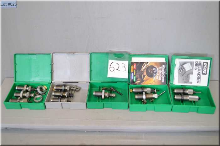 Bag Lot : RCBS Carbide .9 MM Luger 3 die set - RCBS .38/ 357 Mag single die - RCBS .45 Colt Carbide 3 die set - RCBS .243 Win 2 die set - RCBS .223 Rem 2 die set