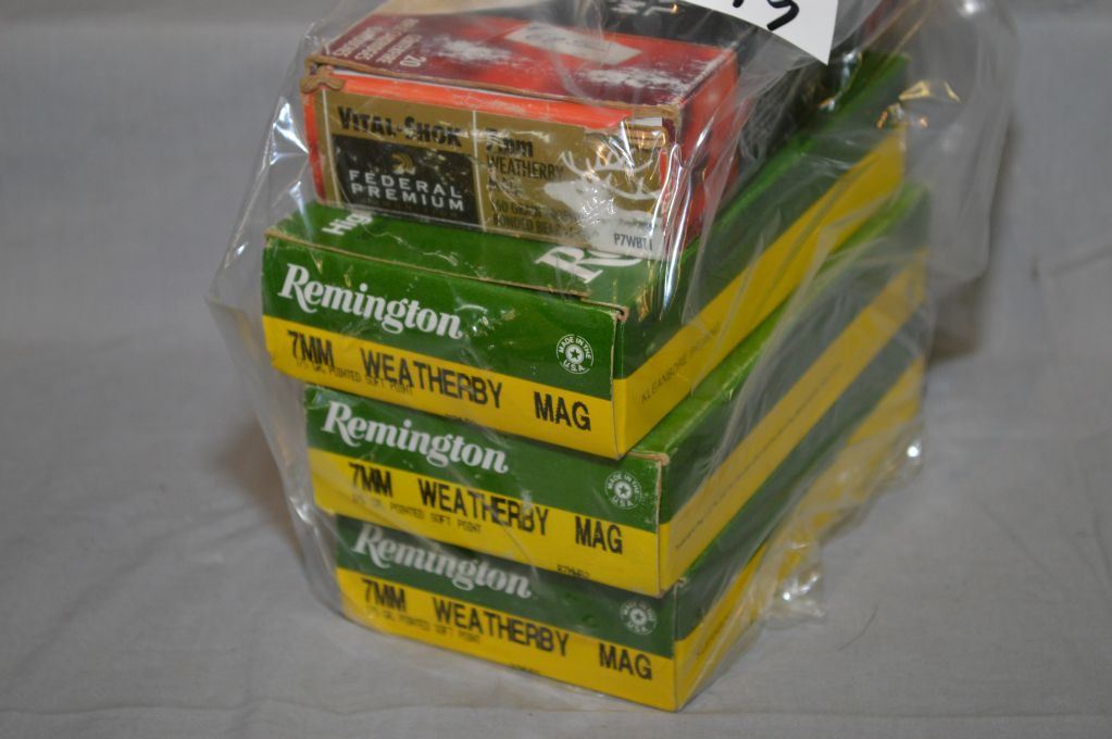 Bag Lot : Three Boxes ( 20 rnds per ) .7 MM Wthby Mag Cal Remington 175 Gr Soft Pt Ammo - 1 Box ( 20 rnds per ) Federal .7 MM Wthby Mag Cal 160 Gr Bonded Bear Claw Ammo