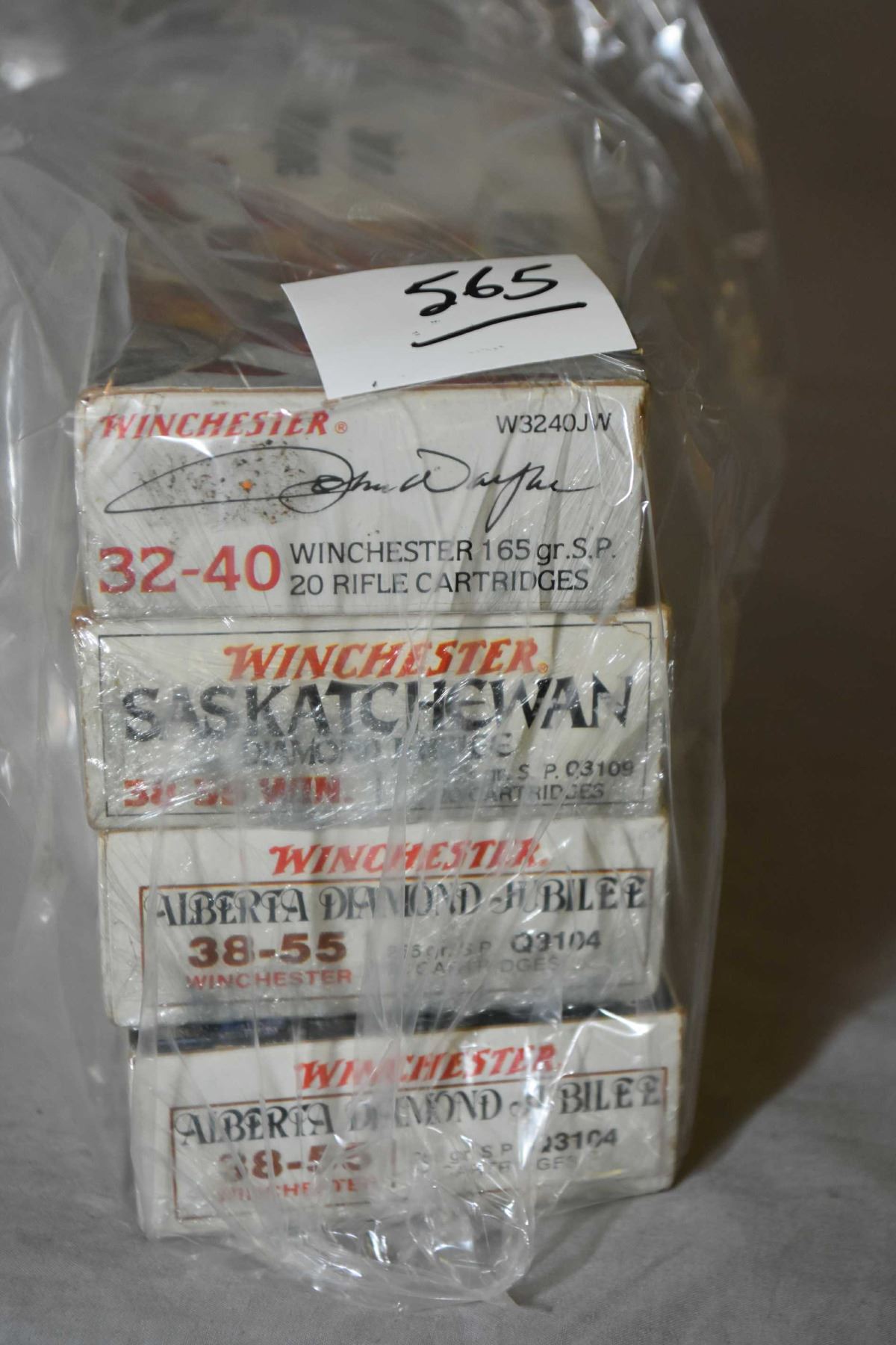 Bag Lot : Two Boxes Alberta Diamond Jubilee Comm .38 - 55 Cal Ammo - 1 Box Sask Diamond Jubilee .38 -55 Cal Ammo - 1 Box John Waye Comm Ammo .32 - 40 Cal