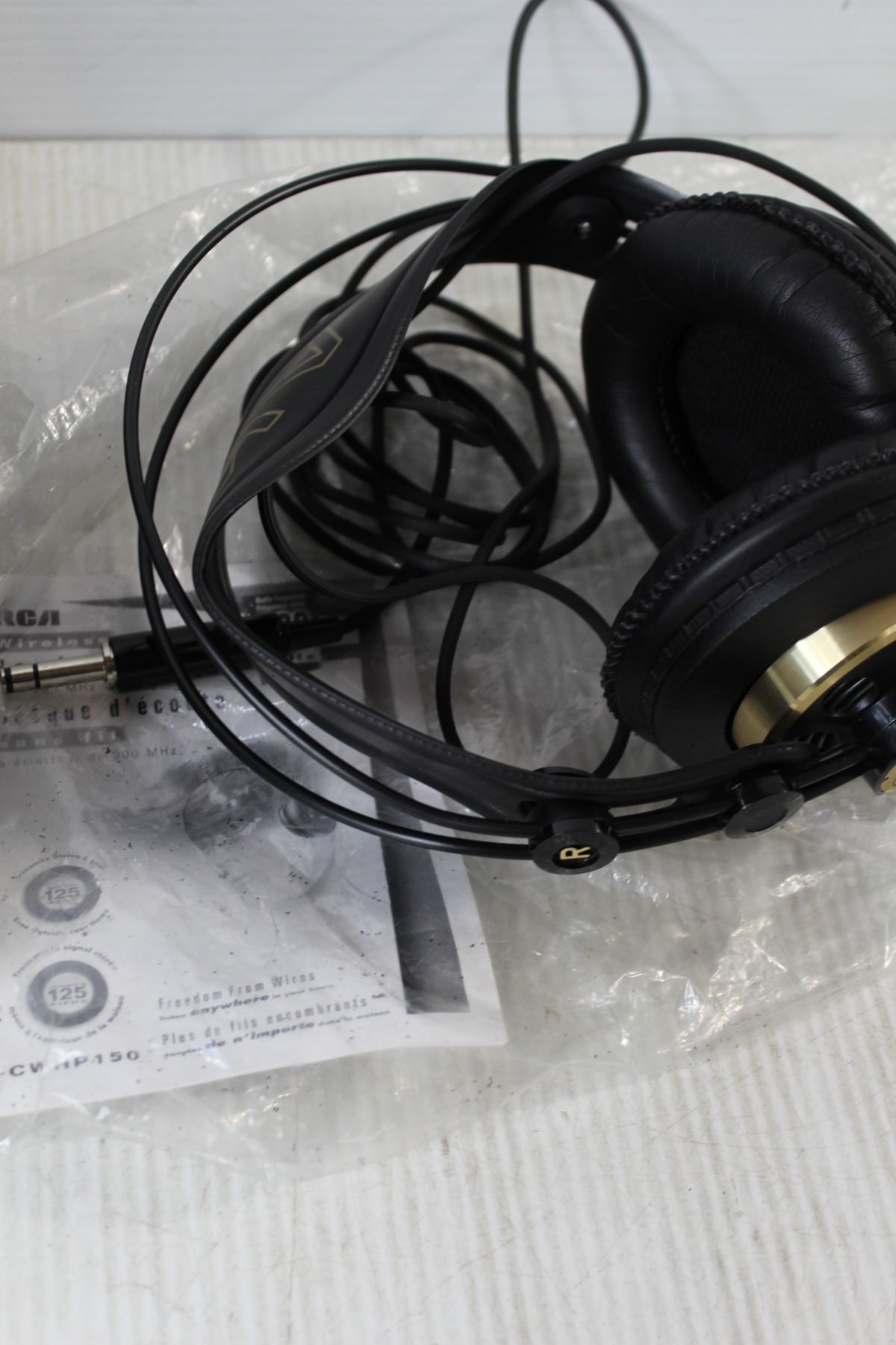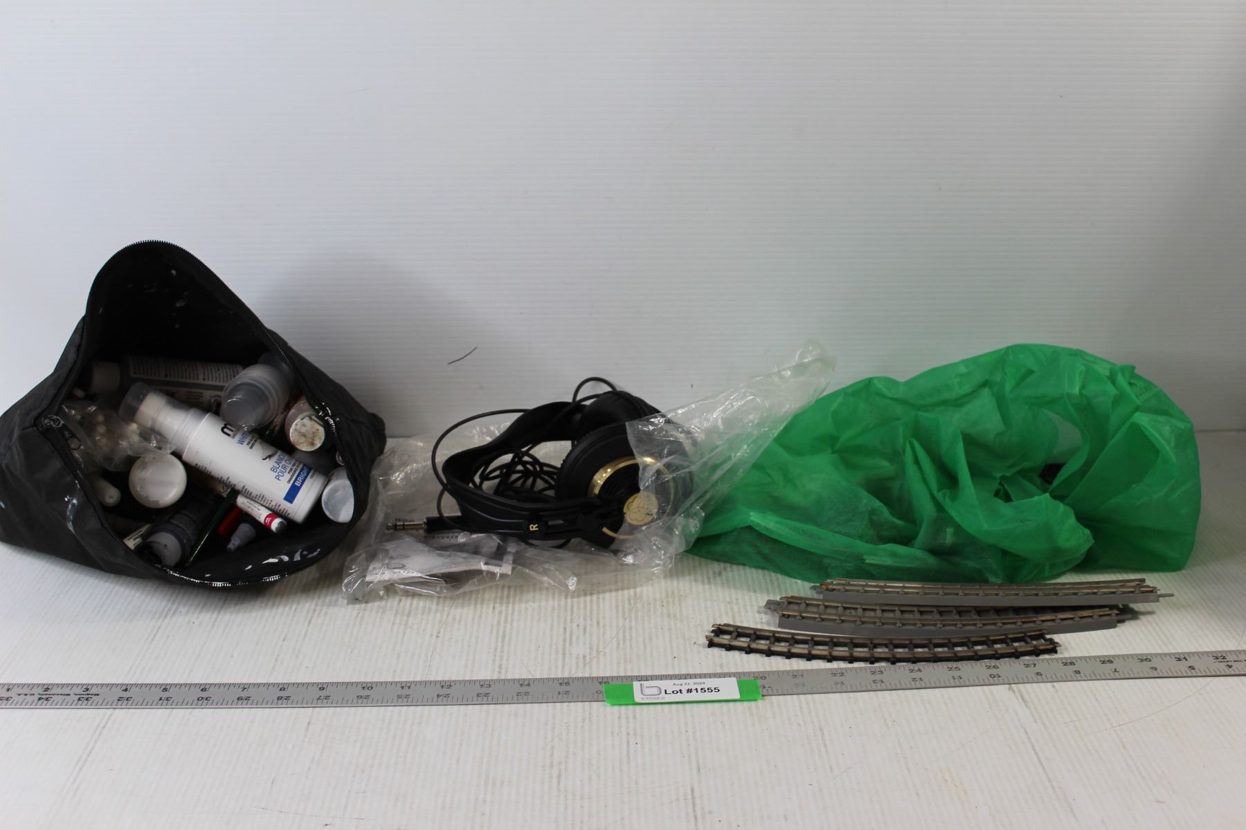 Bag Of Assorted Shoe Paints, RCA Headphones, Assorted Train Tracks